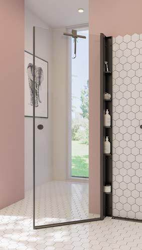 Enkel og elegant dusjhylle med 5 flyttbare hyller som enkelt kombineres med Matchdører og holder orden på det du trenger i dusjen.