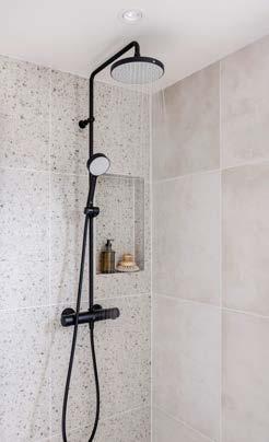 Med Tower-hjørnehyllen, som er en integrert del av Match-serien, blir det oppbevaringsplass til sjampo, såpe og alt det andre du trenger i dusjen. Tower leveres både i sort matt og sateng.
