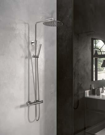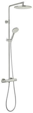 Rainshower med termostatbatteri og skoldesperre som gjør det trygt for de minste. Høydejusterbar toppdusj gjør dusjen enkel i bruk.