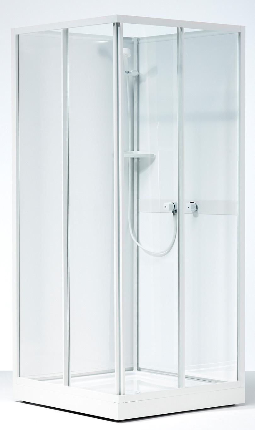 Dusjkabinett 90x90 cm. Basic og stilrent dusjkabinett som er lett å holde rent. Dusjkabinettet er enkelt å justere, selv på ujevne gulv. Produsert i holdbart, hvitlakkert stål. Leveres med dusjgarnityr og hårsil.