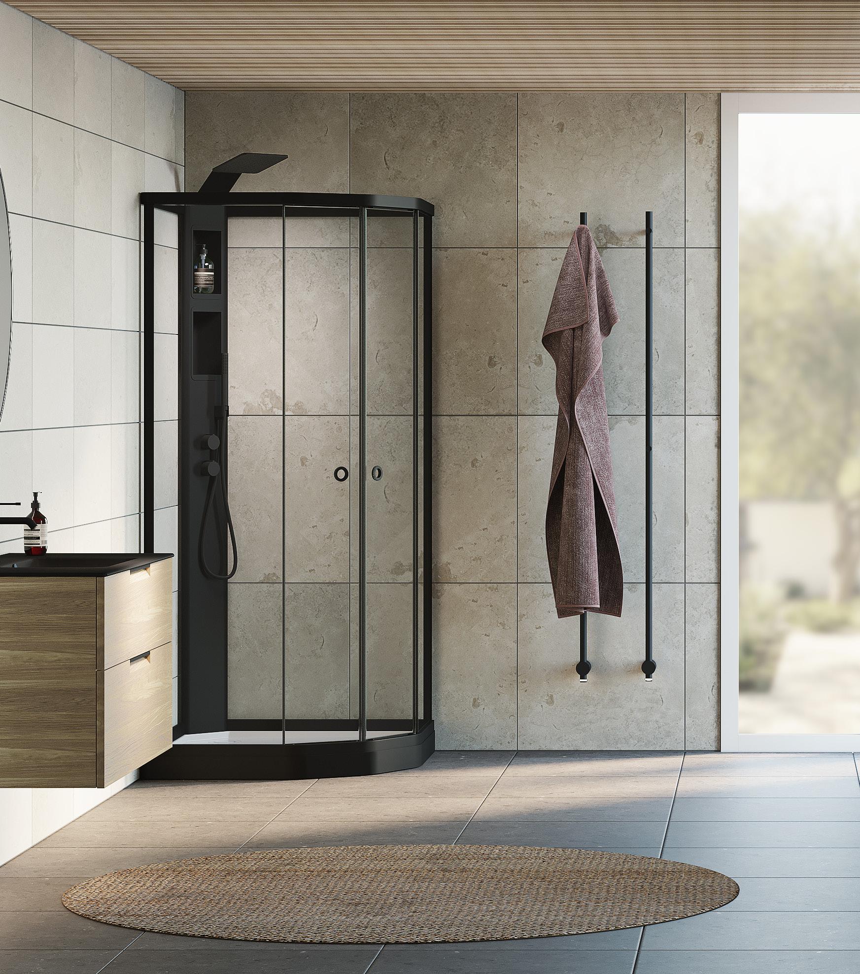 FLOW SEMI DUSJKABINETT MED SORTE PROFILER