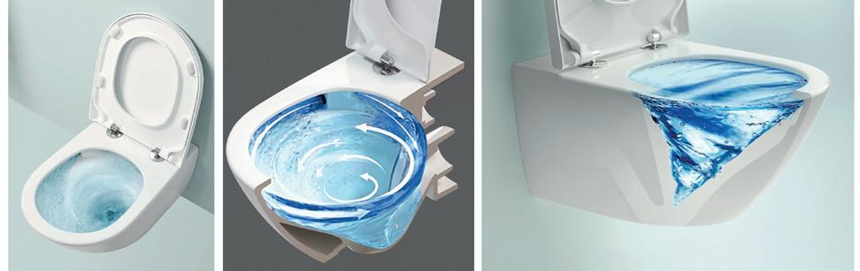 vegghengt toalett med TwistFlush spyleteknologi og Direct Flush/åpen spylekant. Aqua Reduct – sparer 1,5 liter vann uten å gå på bekostning av spyleevnen. 3/4,5 liter spyling. Myktlukkende sete med Quick Release for enklere rengjøring. Hvit Alpin.