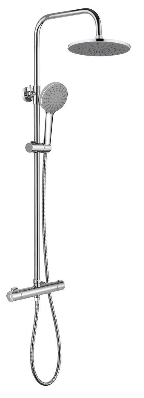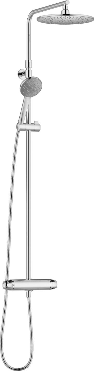 Lekkert komplett sett med takdusj, termostatkran og hånddusj.