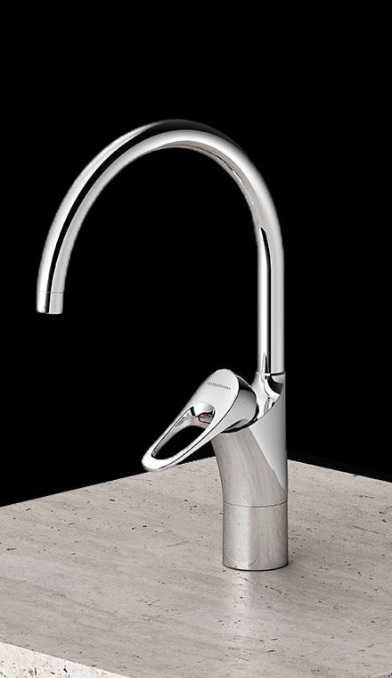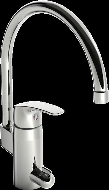 Med avstengning for oppvaskmaskin og høy svingbar tut. Eco-flow sørger for effektiv bruk av vann og energi.