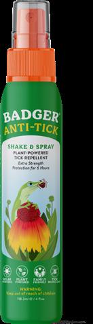 Introducing two new ways to take Badger on your next adventure. Sorry, bugs! Our bug line grows with new 4oz and 2.7oz Anti-Tick Shake & Spray, plus a family-size 8oz Anti-Bug Shake & Spray.