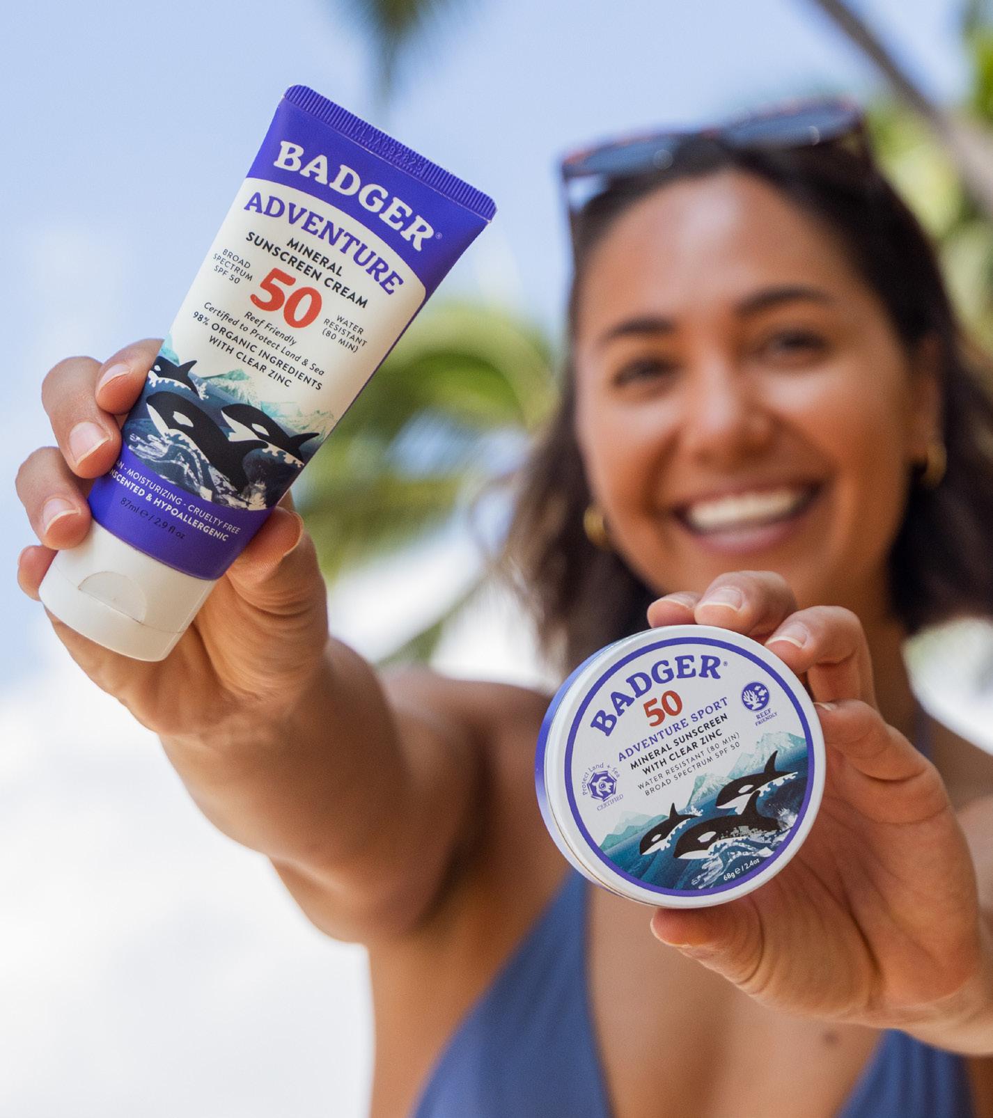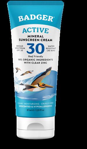 All Badger sunscreens are made with mineral zinc oxide, the safest active ingredient available for effective broad-spectrum protection, in a simple base of organic ingredients, including sunflower oil and organic beeswax plus vitamin E and organic essential oils. Our clean formulas are safer for coral reefs than any chemical sunscreen, with some awarded the rigorous Protect Land and Sea certification*.