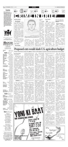 Herald editorial Editor-in-Chief Kevin Bargnes Managing Editor Adam Holt Editor-at-Large Signe Brewster News Carolyn Briggs News Content Adelaide Blanchard Deputy News Ryan Rainey Online Jacob Bielanski Associate Online Rachel Vesco Campus Katherine Krueger City Pam Selman State Andrew Averill Editorial Page Allegra Dimperio Kyle Mianulli Ed. Board Chairman Sam Clegg Ed. Board Member Michael Bleach Jake Begun Alicia Yager Sports Max Henson Sports Content Mike Fiammetta Associate Sports Elliot Hughes Kelly Erickson Statistics Tom Sakash Sports Blog Editor Ian McCue ArtsEtc. Ann Rivall ArtsEtc. Content Sarah Witman Comics Noah Yuenkel Copy Chief Emily Campbell Assoc. Copy Chief Zach Butzler Copy Editors Tom Guthrie Mike Deml Greta Goetz Erica Dawley Photo Megan McCormick Assoc. Photo Malory Goldin Matt Hintz Design Directors Eric Wiegmann Deputy Design Alex Laedtke Page Designers Olivia Moe Kellie McGinnis Katie Gaab Ashley Britts Web Director Adam Parkzer Assoc. Web Director Jake Stoeffler Web Consultant Charlie Gorichanaz