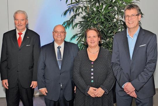 Baden-Badens Oberbürgermeister Dietmar Späth, LSVBW-Präsident Jürgen Scholz, Sportministerin Theresa Schopper und DOSB-Präsident Thomas Weikert (v. l. n. r.)