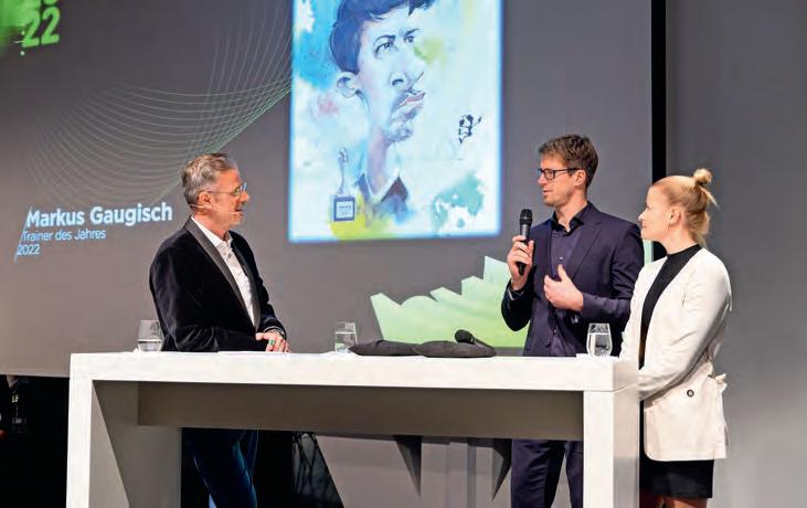 Bundesliga-Männerteams TV Neuhausen und HBW Balingen-Weilstetten. Vor drei Jahren hat er erstmals eine Frauenmannschaft übernommen. Und startete mit der SG BBM Bietigheim durch. Vier Titel, darunter das Double bestehend aus Deutscher Meisterschaft und dem Pokalsieg sowie der Sieg in der European League, sprechen für ihn. Seit einem Jahr betreut er zusätzlich zu den BBM-Frauen auch die deutsche Nationalmannschaft. Laudatorin Antje Döll berichtete von den Anfängen. „Wir waren ein wenig skeptisch, weil wir Markus wegen des Corona-Lockdowns auch nicht gleich persönlich kennenlernen konnten“, sagte die Nationalspielerin, „aber er hat mit allen Spielerinnen telefoniert, war voller Euphorie. Das war richtig ansteckend.“ Seitdem gehen der Trainer und sein Team gemeinsam durch Dick und Dünn. „Er kennt uns, er geht auf uns ein“, erzählte sie Details aus dem Trainingsalltag, „man sieht, wenn er schlechte Laune hat, weil wir schlecht trainieren, dann sagt er uns das aber auch knallhart. Aber auf eine Art, die man ihm nicht übel nehmen kann. Er ist einfach sehr authentisch. Er macht gerne auch mal ein Witzchen und bringt Spaß ins Training. Das ist in einer harten Trainingswoche, in einer harten Trainingsphase sehr wichtig, dass auch der Trainer Spaß daran hat.“ Gaugisch reagierte sehr bewegt. „Solche Worte sind Belohnungen für wahnsinnig viel Invest. Bei allen, die versuchen auf hohes