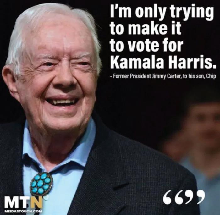 Former President Jimmy Carter, who turned 100 on October 1, 2024, voted on the first day of early voting, October 15th; fulfilling a wish he shared with his grandson, living long enough to vote for VP Kamala Harris for President.