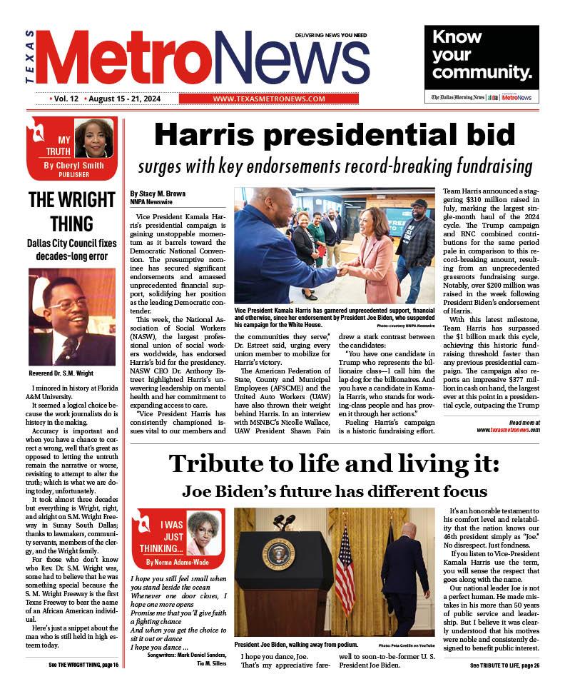Since President Joe Biden announced that he would not be seeking a second term, and then he passed the baton to his VP, our front pages have included insightful, informative, eye-opening, provocative and empowering features, commentaries, and investigative piec-