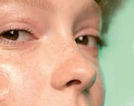 Vânia Martins ergänzt: «Von fetthaltigen Cremes sollte man jedoch absehen. Diese können einen Hitzestau verursachen, der Blutstauungen in Form von geweiteten Kapillargefässen fördert.» Alle Reinigungs- und Pflegeprodukte sind im Idealfall leicht sauer und dank einem pH-Wert von 5,5 bis 5,9 hautneutral. Da UV-Strahlen die Anzeichen von Couperose verschlimmern, emp fiehlt die Visagistin, täglich einen Sonnenschutz mit Lichtschutzfaktor 50+ aufzutragen. «Beson ders hautschonend kann auch ein regelmässig angewendetes Enzympeeling sein, das die Haut von Hautschüppchen befreit.»