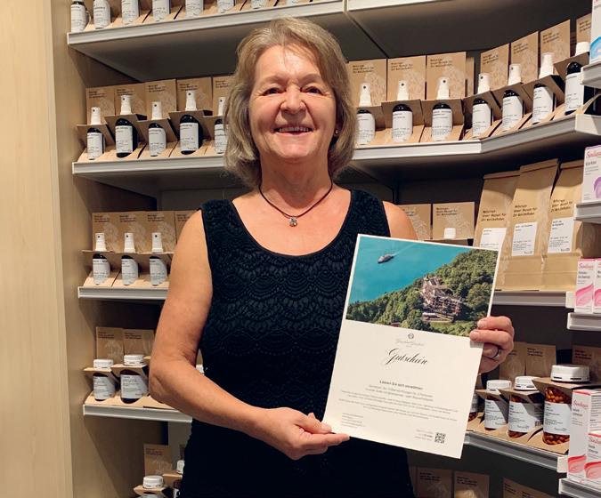 Wir gratulieren Heidi Koch, Kundin in der DROPA Drogerie Niederberger in Wohlhusen, ganz herzlich zum Gewinn des Gutscheins vom Wettbewerb aus der DROPA Balance 07/23. Wir wünschen eine erlebnisreiche Auszeit im Grandhotel Giessbach am Brienzersee.