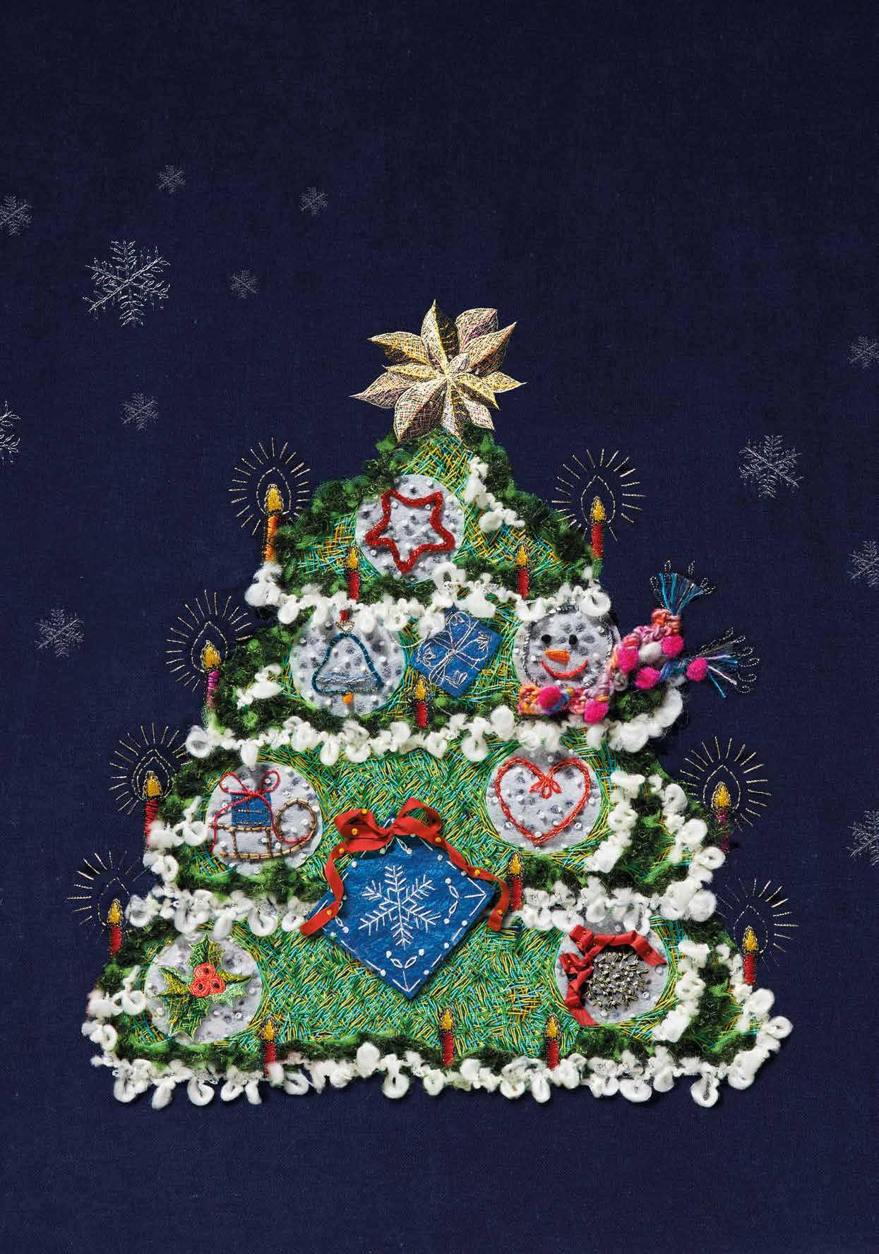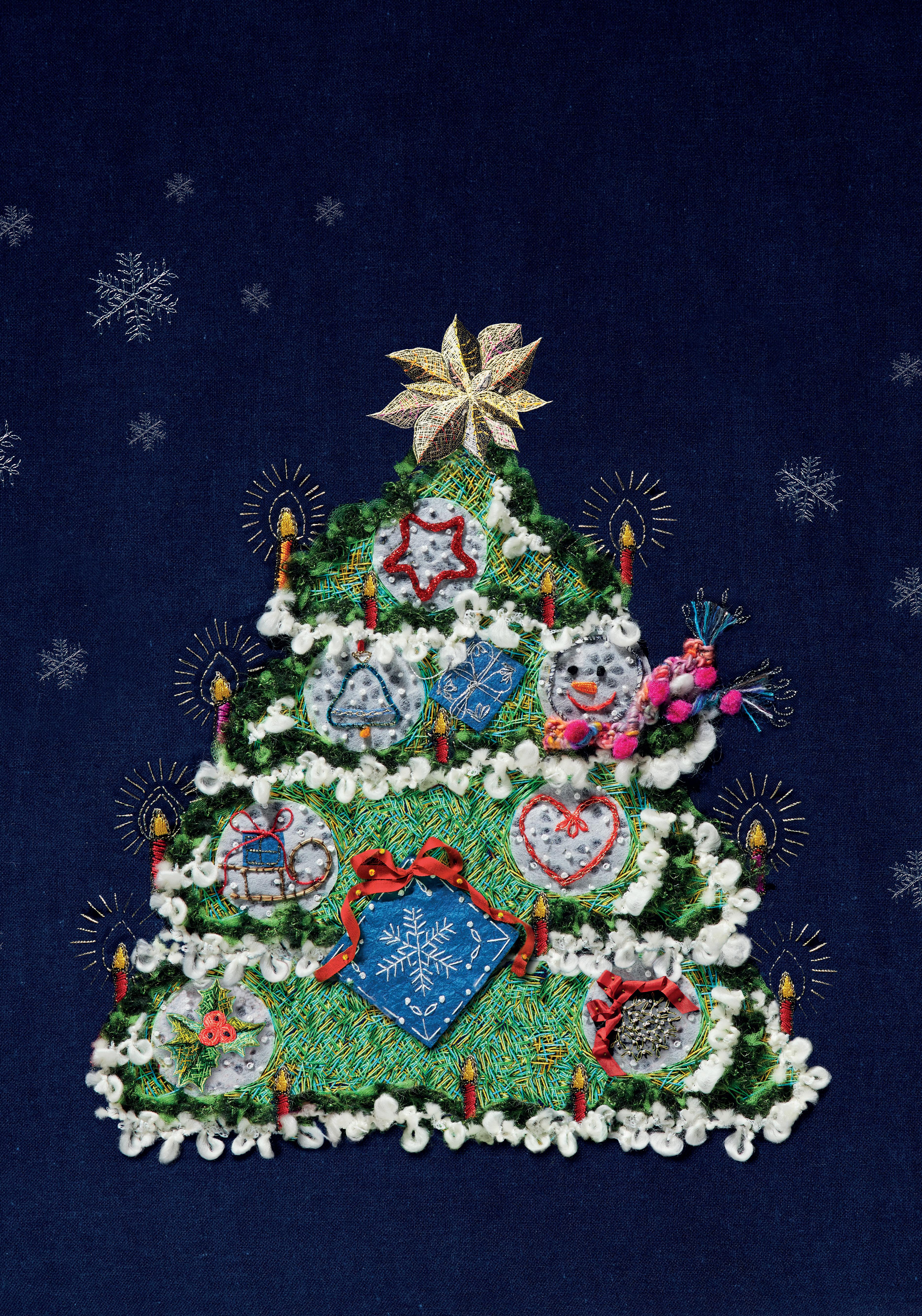 kombiniere oft mehrere Techniken, um Tiefe zu erzeugen. Der goldene Stern auf dem Baum etwa wäre zu brav geworden, hätte ich einfach regelmässig gearbeitet. Der Stern leuchtet auf, wenn Unregelmässigkeit ins Muster kommt. Die Technik folgt der Idee, nicht umgekehrt.