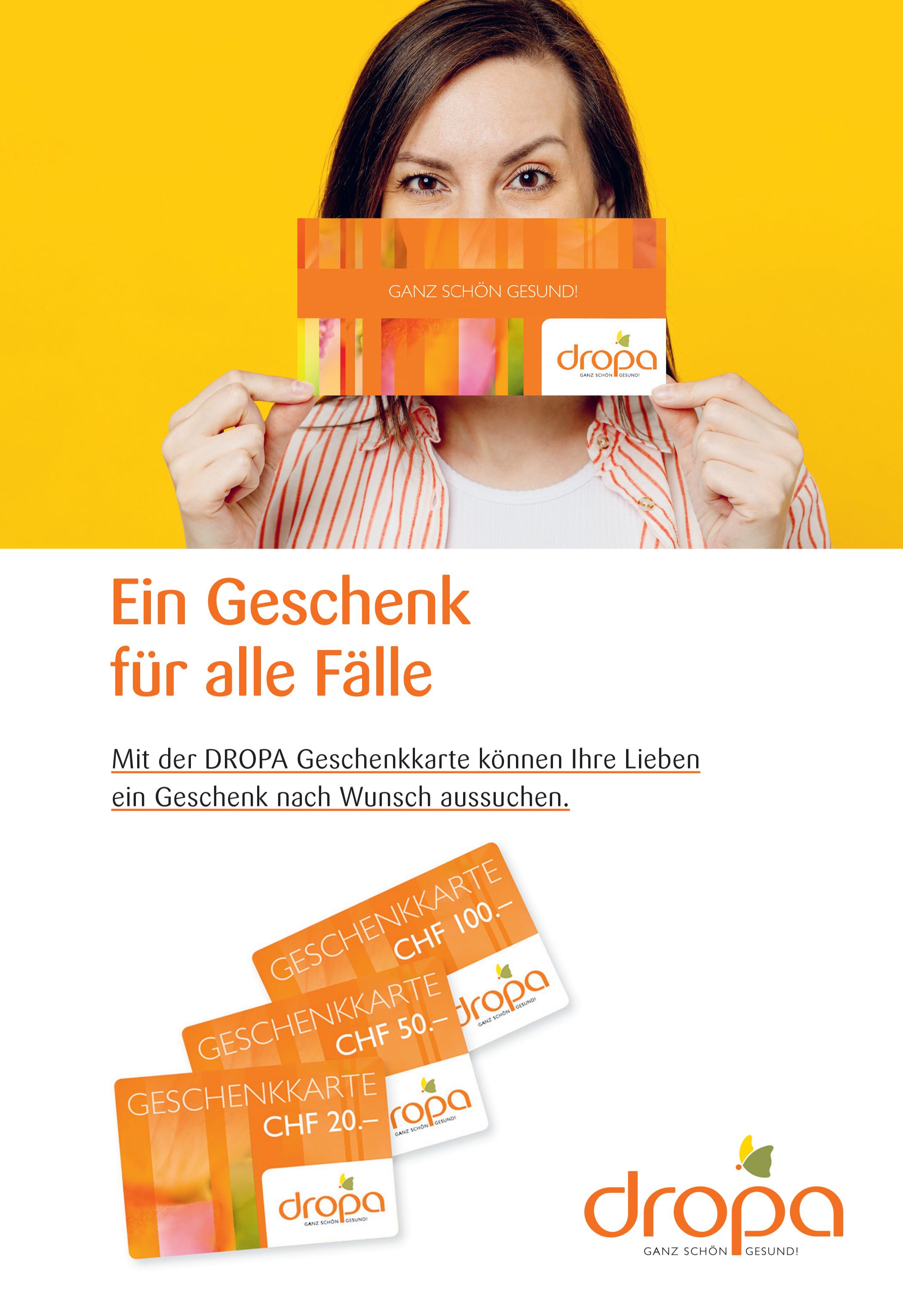 Gewinnen Sie einen von drei DROPA Einkaufsgutscheinen im Wert von CHF 50.–. Geben Sie den ausgefüllten Talon in Ihrer DROPA ab. Viel Glück!