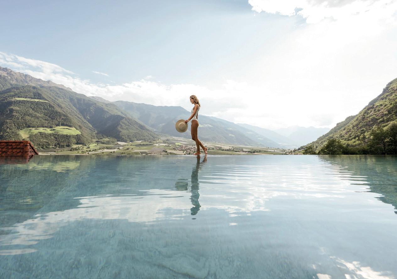 In der mediterranen Wasserwelt des Preidlhofs mit 14 Pools und Whirlpools sowie einem Thermalpool lässt es sich wunderbar abtauchen. Der sechsstöckige Sauna-Tower ist mit 18 Dampf-, Relax- und Schwitz-Attraktionen und Sky-InfinityPool ausgestattet.
