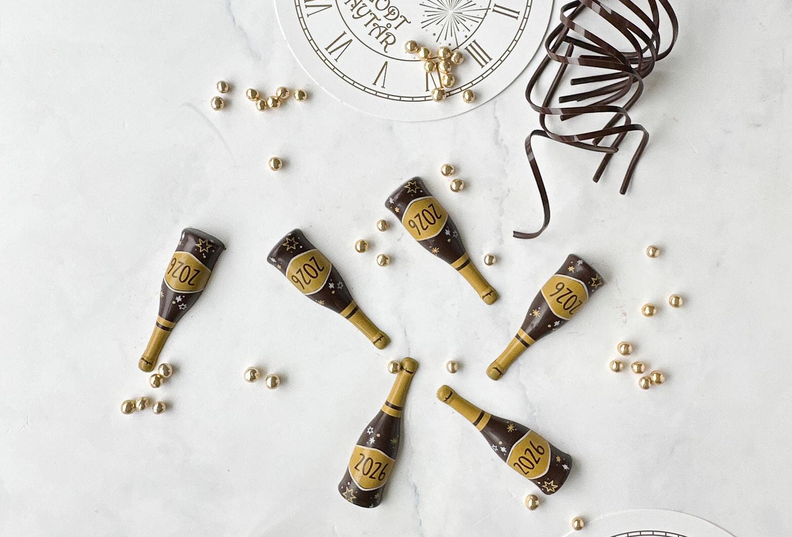Inden vi siger velkommen til 2026, skal der gøres status på året der gik, der skal reflekteres og der kan drømmes om det nye år. OG så skal der en masse god mad, brød, chkolade, kage, dessert og drikke til... Hvad tilbyder du dine kunder på årets sidste dag? Vi har her et par idéer til nytårskager og pynten til fx dine nytårsdesserter.