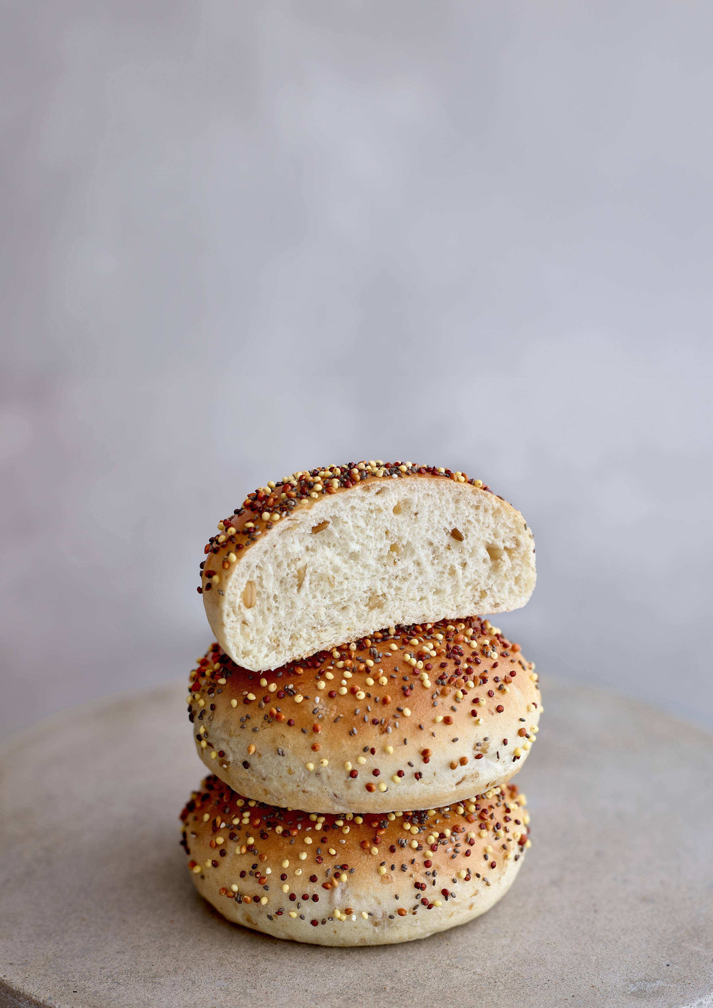 Slåes aflange op med sesam på toppen og ligges i raskeklæder med mel