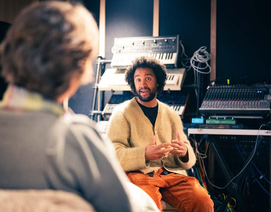 Ordfører Lisbeth og musikkprodusent Andrew spiller opp favorittlåter i studio.