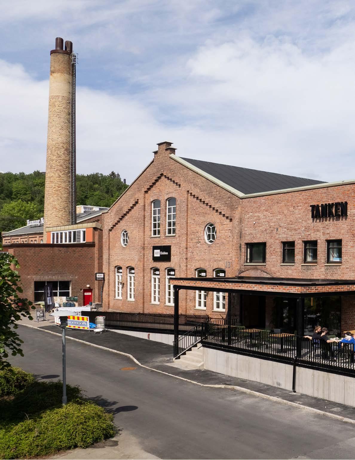 i 1920, gikk slepebåten «Hamang 1» med en lekter full av råvarer og ferdige papirballer mellom Hamang Papirfabrikk og dampskipsbrygga på Kadettangen, for omlasting og eksport ut til verden. Og Sandvikselva ble farget blå, grønn og rød etter hva slags farge som var under produksjon og som strømmet ut fra fabrikken. På den tiden var det kanskje ikke så foruroligende at elven stadig skiftet farge, men nå vet vi at dette var alt annet enn sunt, verken for elvebredden eller innbyggerne i Sandvika. På 1960-tallet førte forurensningen til at det ble bygget et vannrenseanlegg, den såkalte «Tanken», derav dagens navn. Og i 2024 er det ikke farger, men musikk som stadig strømmer ut av det vakre anlegget. Musikk som skaper næring, men også glede og trøst.