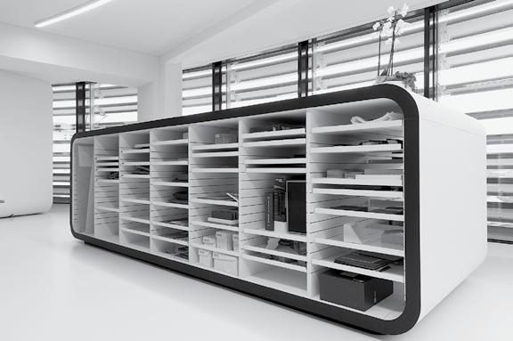 Mit dem Umbau wurde auch der Schritt von der analogen in die digitale Welt vollzogen. Das zeigt sich im Gebäude selbst: Der «Loop» wirkt sehr aufgeräumt und clean, nirgends liegen Ordner herum oder stapeln sich Papierberge. Die Umstellung auf ein «papierloses Büro» haben wir bereits vor dem Bezug des «Loops» vollzogen. Unser Ziel war es, dass am Zügeltag jeder nur seinen Laptop, den Bildschirm, die Tastatur, die Maus und eine kleine Kiste mit Büromaterial sowie einige als unverzichtbar erachtete Ordner mitnimmt. Diese sollten Platz finden im persönlichen Sideboard-Abteil. Dieses Ziel haben