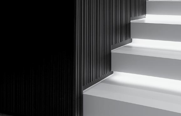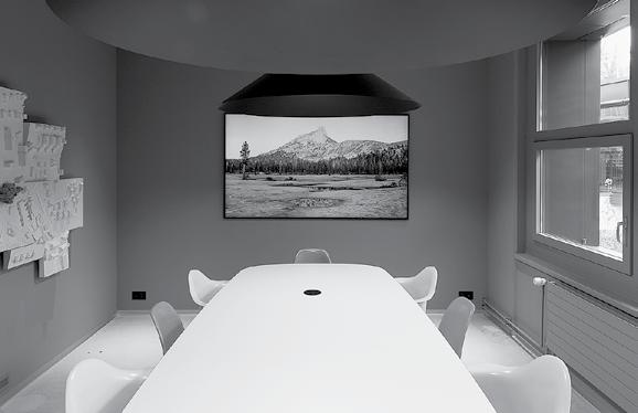 Diskussionen hervorrief. Um den Kontrast zwischen Ring und Kern noch zu verstärken, haben wir im Ring auch die Decken, Wände und das Gros der Möbel weiss gestaltet.