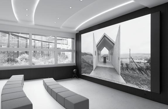 Betritt man den Loop, fällt einem der grosse LEDBildschirm im Kaffeebarbereich auf. Wozu nutzt ihr diesen? Meist ist es ja so, dass man zuerst eine klare Nutzung festlegt und dann das entsprechende Produkt beschafft. Mit diesem Screen gingen wir anders vor: Wir haben ihn eingerichtet, ohne vorab eine klare Nutzung zu definieren. Die Möglichkeiten sind nahezu unbegrenzt. Man kann Filme und Live-Übertragungen schauen oder den Screen als digitalen Bilderrahmen nutzen. Aktuell läuft ein Programm mit mehrmals am Tag wechselnden Bildern, das unser junger Mediamatiker Miro eingerichtet hat. In der Vormittagspause etwa sehen wir nun inspirierende Bilder von Landschaften, Gebäuden oder Städten, danach wechselt das Motiv.