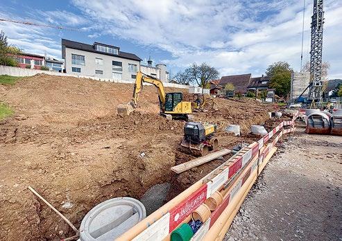 Die Aargauer Gemeinde Küttigen zählt zu den attraktivsten Wohnlagen des Aargaus und wächst stetig. Sie zeichnet sich in einer leichten Mulde vor dem JuraSüdhang mit ihrer weitgehend intakten Landschaft und einer vielfältigen Flora und Fauna aus. An einem Südhang im Ortsteil Rombach hat die JKB Immobilien AG das Projekt «AAAtrium» lanciert – dessen Lage von Anfang an hohe bautechnische und architektonische Ansprüche an die Planungsbeteiligten stellte. Die, von oben betrachtet, dreieckige und daher komplexe Parzellenform liegt eingebettet zwischen Strasse, Wald und Bach in einem steil abfallenden Gelände, was umfangreiche Böschungssicherungen erforderlich machte. Dazu war die baurechtliche Ausnützungsziffer zu beachten und die delikate Zufahrtssituation zu berücksichtigen.