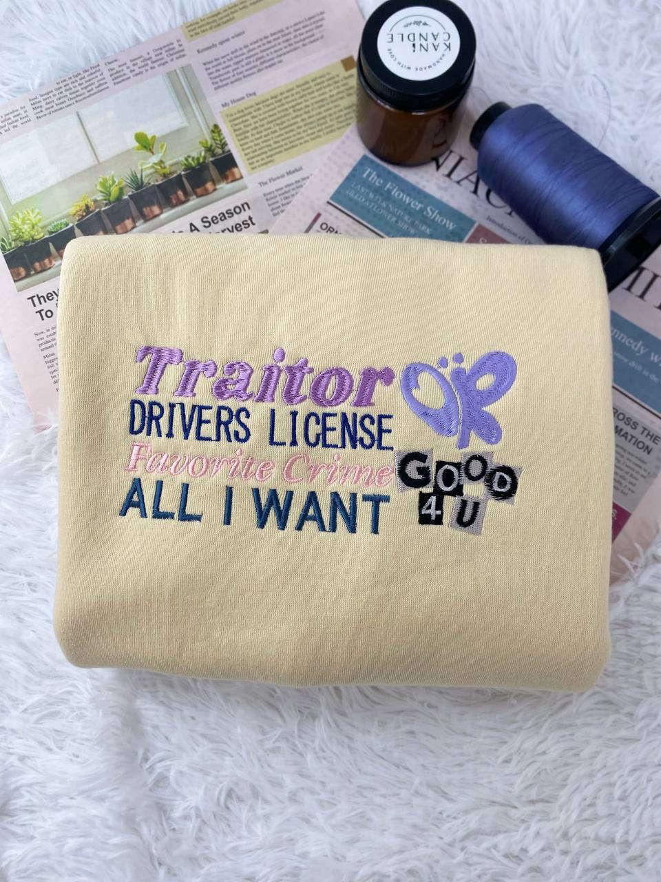 Olivia Rodrigo Songs Embroidered Crewneck TShirt, Sweatshirt for Men Women Shirt, Gift for Men Women