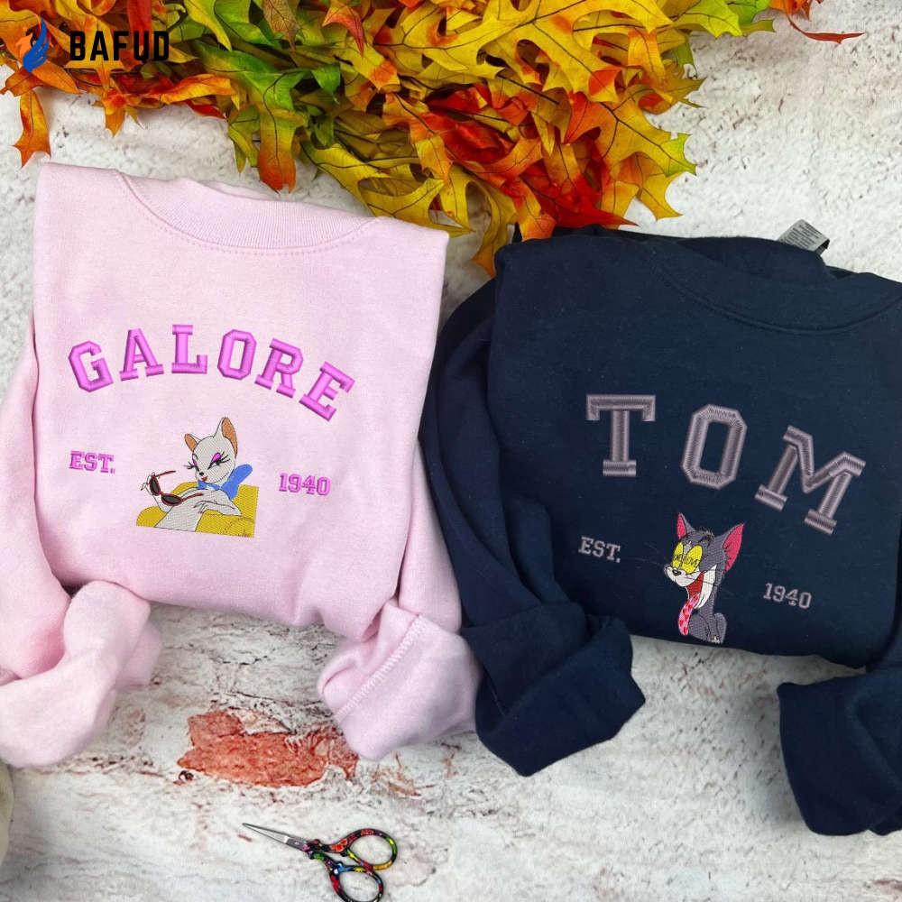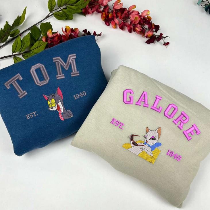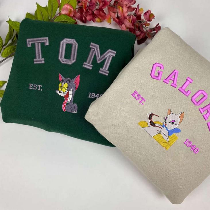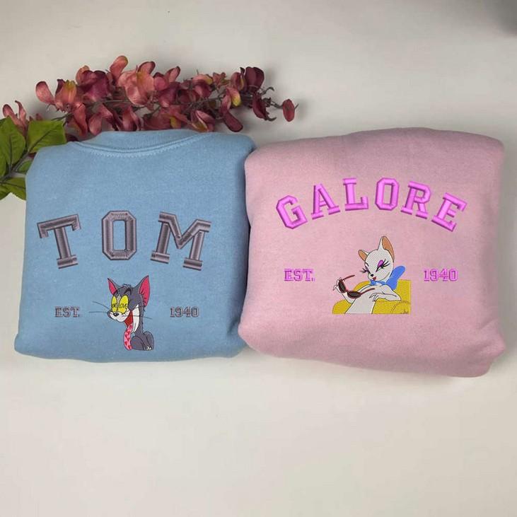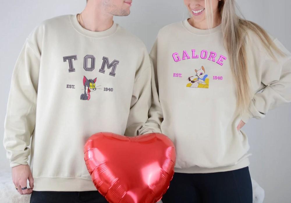 The Tom and Galore Embroidered Sweatshirt is the perfect Valentine's Day gift for couples who love Tom and Jerry. Made with high-quality materials, this sweatshirt features an adorable cartoon design that showcases the iconic Tom and Jerry characters. Its comfortable fit and soft fabric make it ideal for everyday wear. The embroidered details add a touch of elegance and uniqueness to this couple shirt. Surprise your loved one with this thoughtful and stylish gift that symbolizes your special bond. Spread love and laughter with the Tom and Galore Embroidered Sweatshirt.