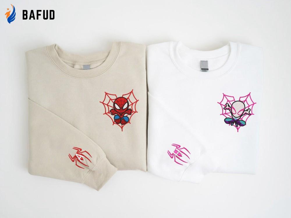 Introducing our Spider Couple Embroidered Sweater, a perfect blend of style and comfort! Made from high-quality materials, this sweater features an eye-catching embroidered Spiderman design that adds a touch of uniqueness to your look. With its cozy crewneck and long sleeves, it offers warmth and protection during chilly days. The trendy and vibrant colors make it a musthave for any Marvel fan. Whether you're heading out for a casual hangout or a movie night, this sweatshirt will keep you looking cool and feeling cozy. Stand out from the crowd and showcase your love for Spiderman with this trending Marvel shirt. Get ready to swing into action with our Spider Couple Embroidered Sweater!