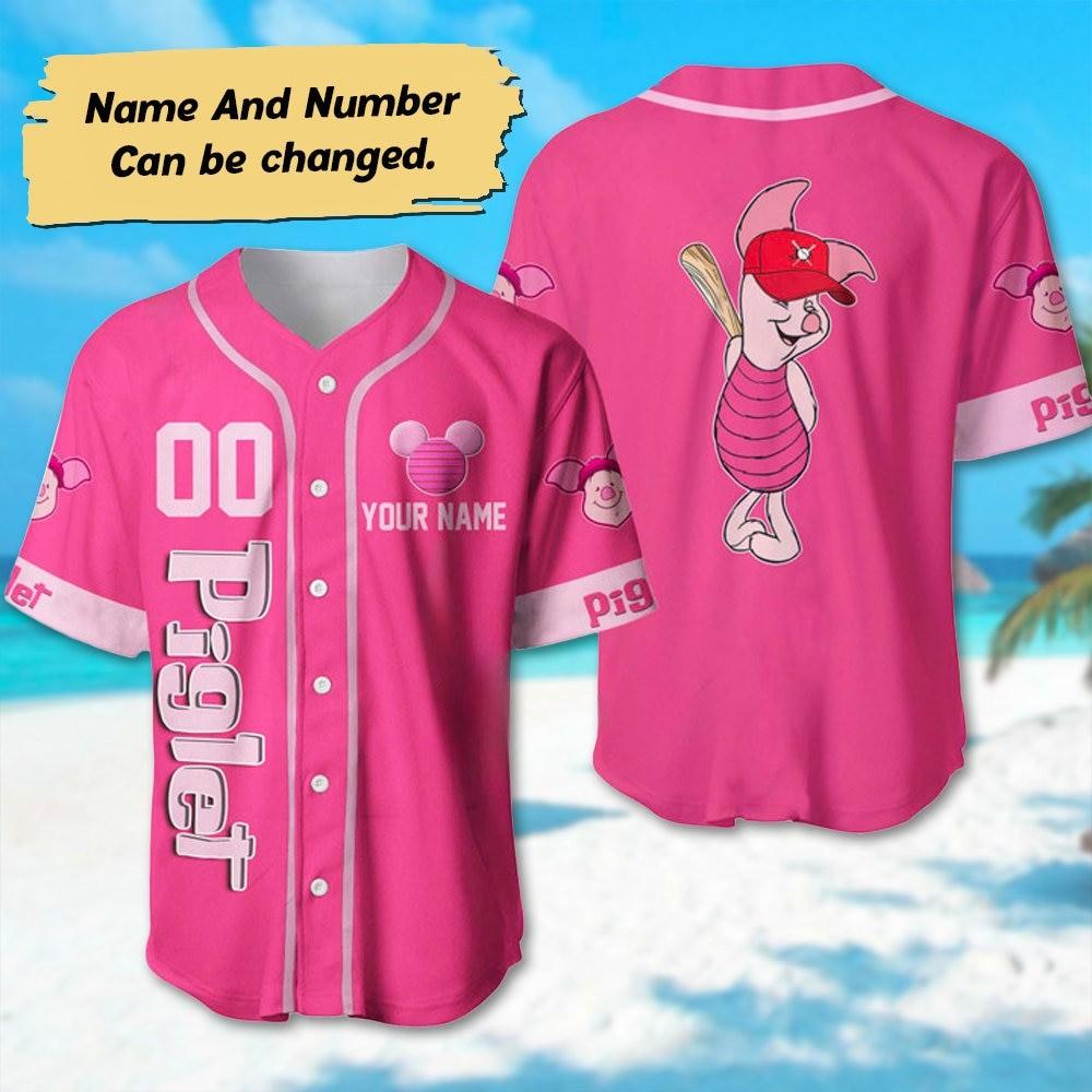 Personalized Piglet Pink Baseball Jersey, Piglet Winnie The Pooh Basketball Jersey, Magic Kingdom Shirt, Birthday Gift For Kid Adult