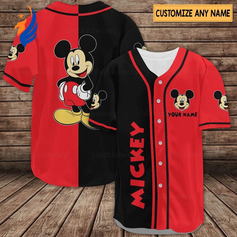 Get Happy with Personalized Mickey Mouse Baseball Jersey - Black Red Design Information