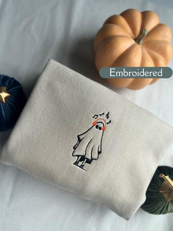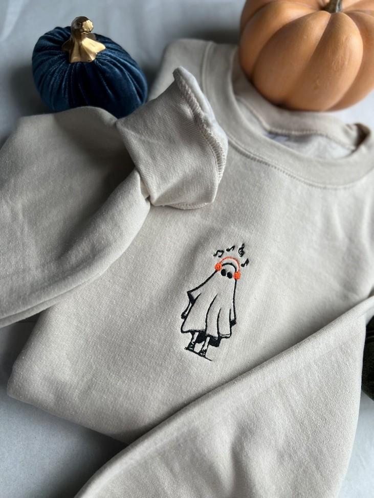 Introducing our Music Ghost Embroidered Crewneck T-Shirt and Sweatshirt, a must-have for men and women seeking comfort and style. Made with premium quality fabric, this sweatshirt offers cozy warmth during colder months. The unique ghost embroidery adds a touch of personality and sets it apart from ordinary sweatshirts. Perfect for music lovers, this trendy garment allows you to express your love for music in a fashionable way. Available in various sizes, it ensures a comfortable fit for everyone. Elevate your wardrobe and make a statement with our Music Ghost Embroidered Crewneck T-Shirt and Sweatshirt.