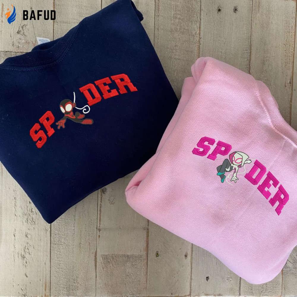Introducing our Spider Couple Embroidered Sweater, a perfect blend of style and comfort! Made with premium quality fabric, this sweater features an adorable spider couple design, adding a touch of uniqueness to your wardrobe. The cartoon sweatshirt is not only trendy but also cozy, ideal for chilly winter days. With its Valentine embroidered sweatshirt, you can express your love in a fashionable way. The trending crewneck is a must-have for fashion enthusiasts, keeping you on top of the latest trends. And for all the Spiderman fans out there, our Spiderman shirt is a dream come true! Experience the value of superior craftsmanship and attention to detail with these sweatshirts. Stay warm, stylish, and make a statement with our collection. Upgrade your wardrobe today!