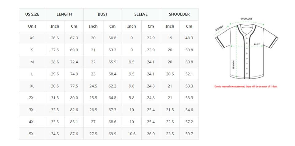 Sizes: S, M, L, 2XL, 3XL, 4XL, 5XL