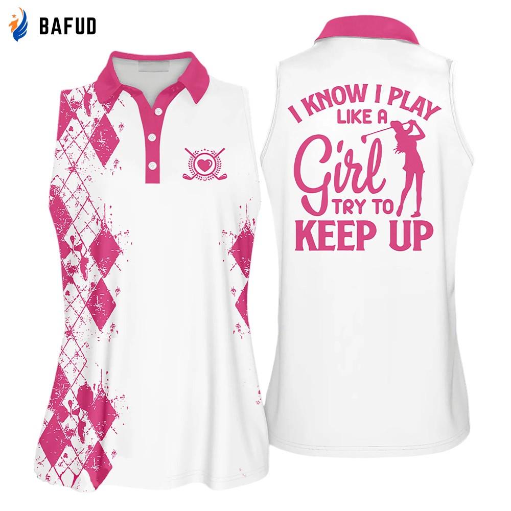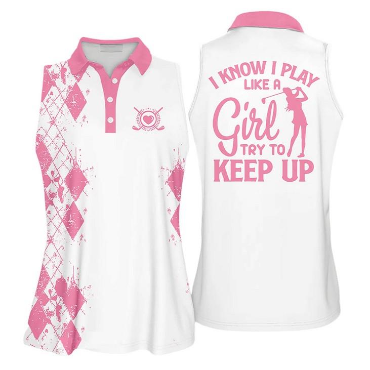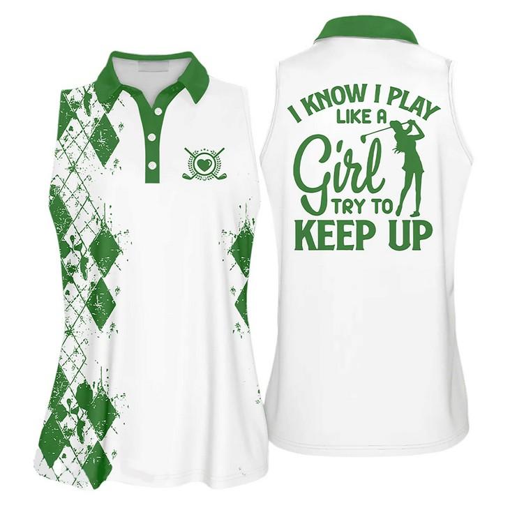 Golf Women Sleeveless Athleisure Polo Shirt, I Know I Play Like A Girl Try to Keep Up - Gift For Golfers, Females, Golf Lovers, Mother's Day