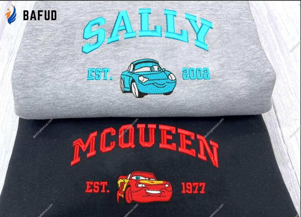 The McQueen/Mater/Sally Embroidered Crewneck T-Shirt/Sweatshirt is a must-have for Cars movie fans. Made with high-quality materials, this shirt offers comfort, style, and durability. The embroidered details showcase the beloved characters, adding a touch of nostalgia to your wardrobe. Whether you're a man or a woman, this shirt is designed to fit perfectly, making it suitable for all. With its vibrant colors and intricate embroidery, this shirt is a statement piece that will surely turn heads. Show off your love for the Cars franchise and stand out from the crowd with this McQueen/Mater/Sally Embroidered Crewneck T-Shirt/Sweatshirt. Get yours today and experience the magic of this iconic movie in your everyday life.