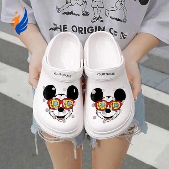 Information About Mickey In Sunglasses Custom Name Crocs-Slippers-Slippers Classic Clogs Shoes In White