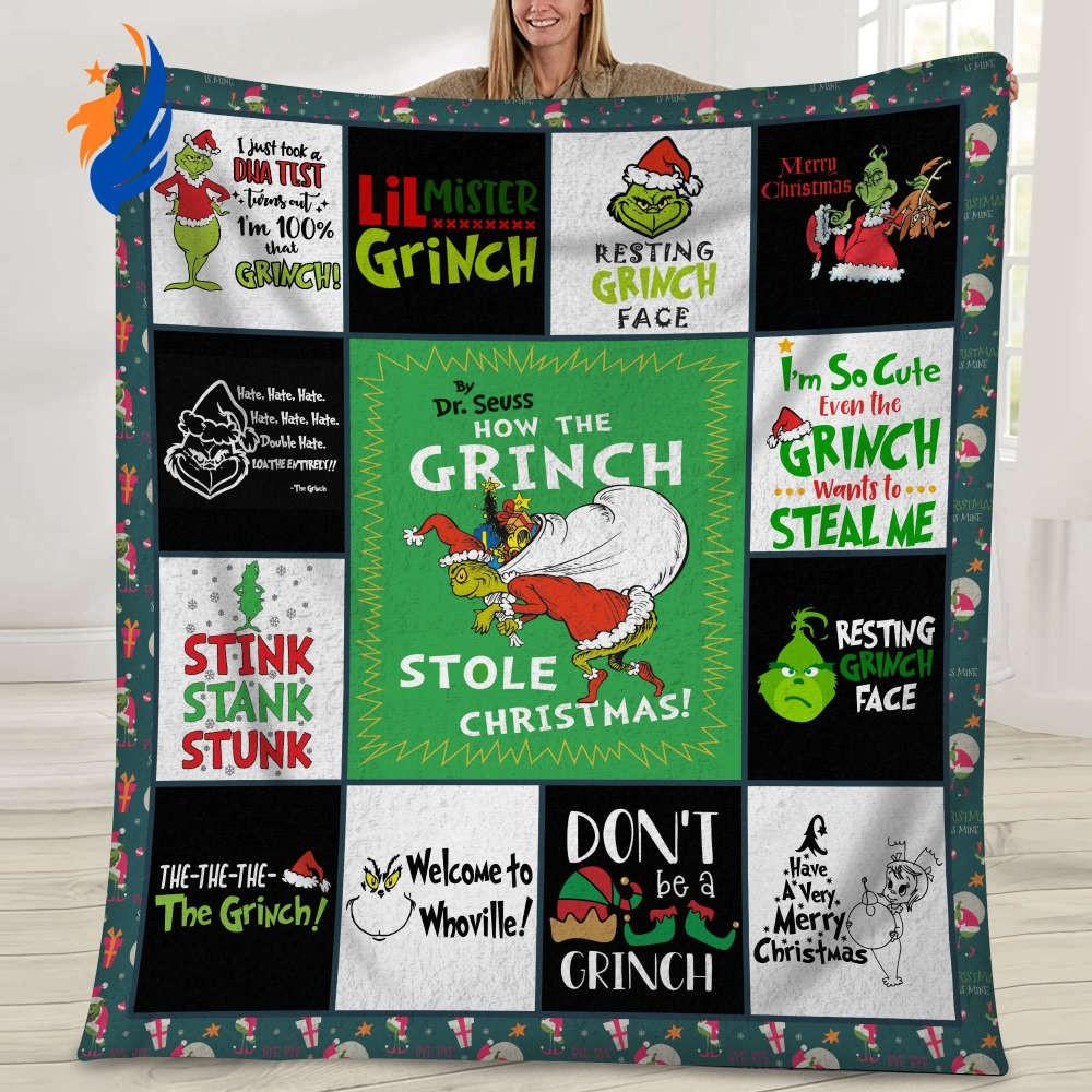 The Lil Mister Grinch Stole Christmas Movie Quilt Blanket is the ultimate holiday must-have! Wrap yourself in the magical world of Dr. Seuss with this cozy and enchanting blanket. Featuring vibrant colors, intricate designs, and made from premium quality materials, this quilt blanket ensures warmth and comfort throughout the festive season. Whether you're cuddling up with loved ones or watching your favorite Christmas movie, this blanket adds a touch of whimsy and nostalgia to your home decor. Embrace the spirit of the Grinch and bring joy to your loved ones with this unique and delightful gift. Get ready to create cherished memories and spread holiday cheer with the Lil Mister Grinch Stole Christmas Movie Quilt Blanket!