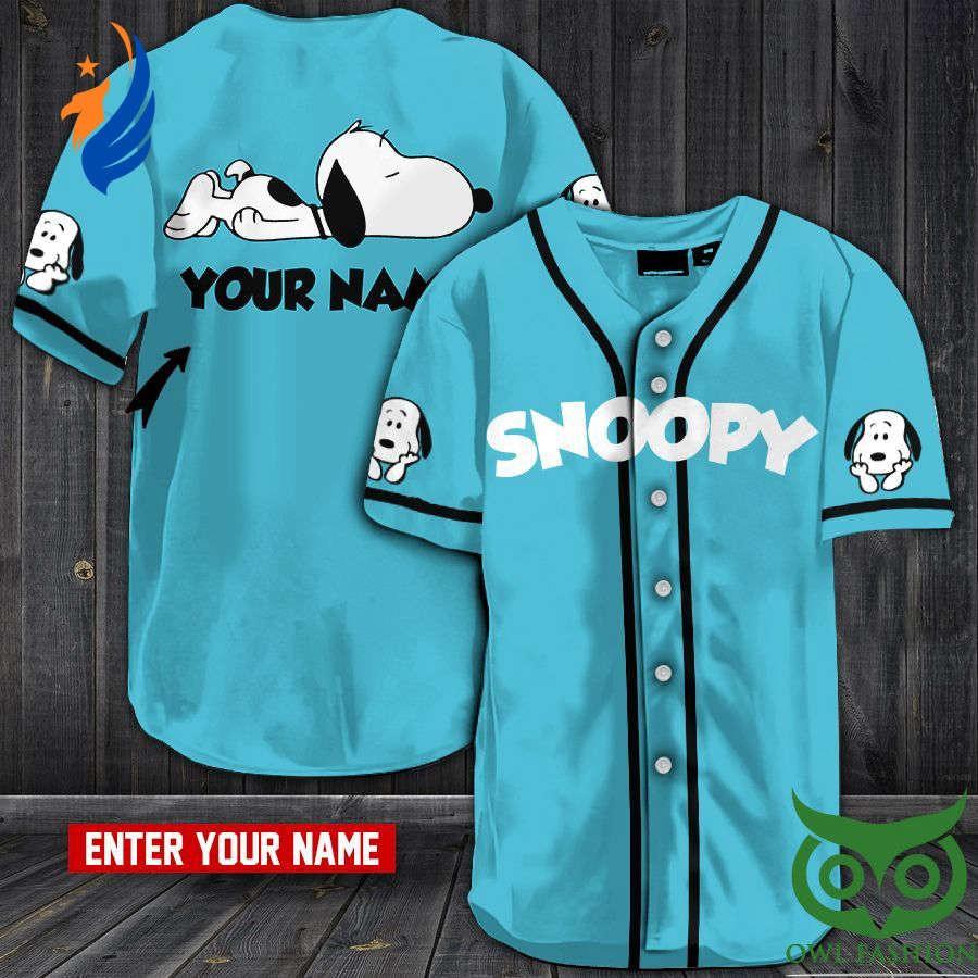 Custom Name Snoopy Blue Baseball Jersey Shirt - Gift for Women