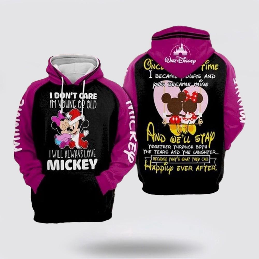 Join Mickey and Minnie Mouse on their eternal journey of love and create lasting memories with our Mickey and Minnie Mouse Love Together All Over Printed Custom 3D Hoodie. Embrace the magic and spread joy wherever you go!
