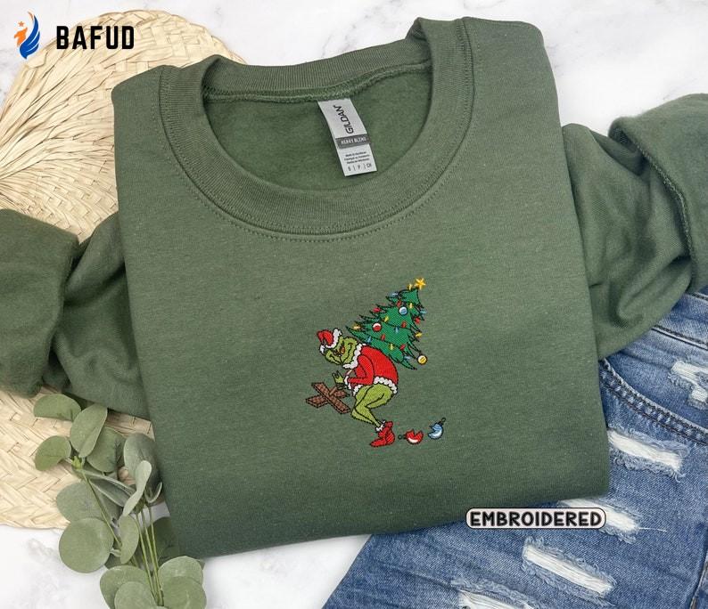 Christmas Grinch Tree Embroidered Crewneck TShirt, Sweatshirt for Men Women Shirt, Gift for Men Women