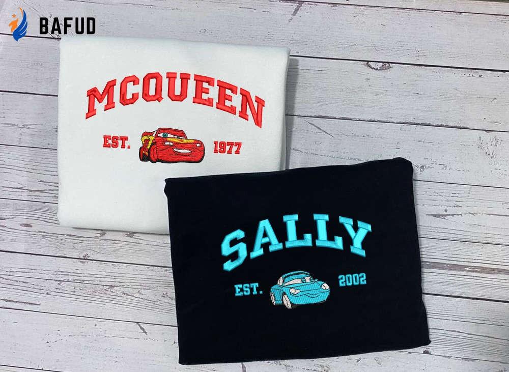 Introducing the Cars Mcqueen and Sally Embroidered Sweatshirt, a must-have for all cartoon enthusiasts! This trendy crewneck is the perfect Christmas gift for couples who want to showcase their love for each other and their favorite characters. Made with high-quality materials, this sweatshirt offers superior comfort and durability. The intricately embroidered design of Mcqueen and Sally adds a touch of nostalgia and charm. Whether you're snuggled up by the fireplace or out for a stroll, this sweatshirt will keep you cozy and stylish. Get ready to turn heads and spread holiday cheer with this trending crewneck. Don't miss out on this limited edition Christmas edition. Order now and create lasting memories this festive season!