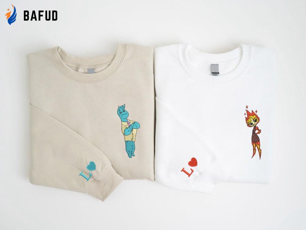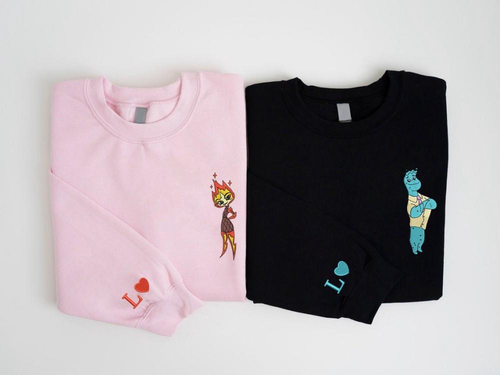 Elemental Ember and Wade Embroidered Sweatshirts: Valentine Cartoon Couple Shirt