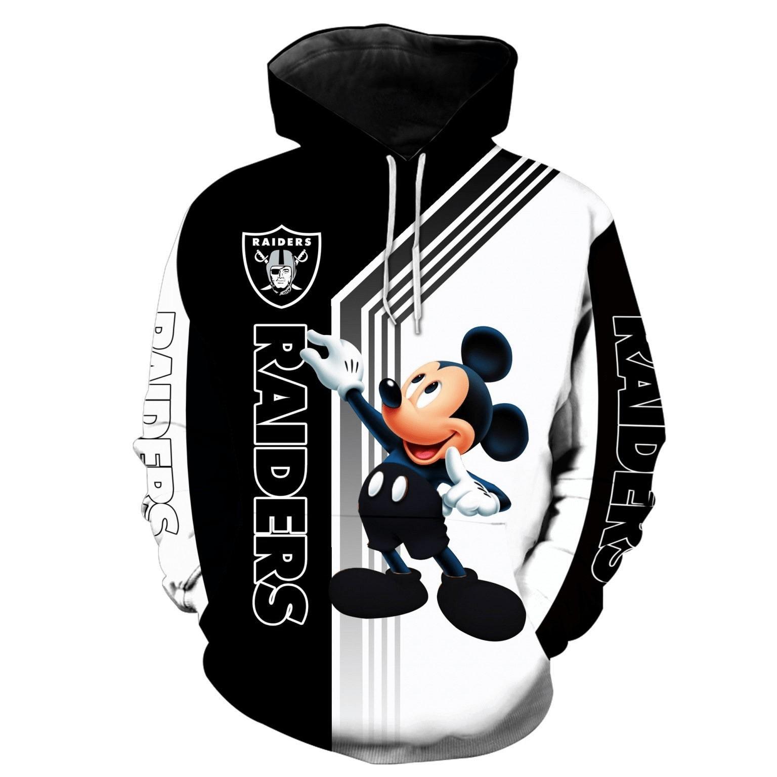 Introducing the ultimate fan gear: NFL Las Vegas Raiders Mickey 3D Hoodie Zip Hoodie! This trendy zip hoodie features a unique 3D all-over print design, showcasing your love for the Raiders and Mickey Mouse. Made with high-quality materials, it offers exceptional comfort and durability. Stay warm while cheering for your favorite team in style! Get yours now and elevate your game day wardrobe. The perfect gift for any Raiders fan!