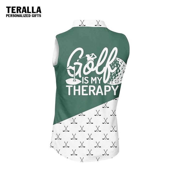Introducing our Custom Name Golf Is My Therapy Green and Golf Clubs Pattern Sleeveless Polo Shirt For Women, the perfect addition to your golf wardrobe. Made with the utmost care and attention to detail, this polo shirt is designed to provide both style and functionality on the golf course.