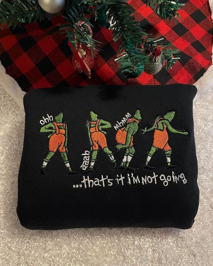 Our Vintage Grinch "That’s It I’m Not Going" Embroidered Crewneck T-Shirt is not only a fashionable choice but also a statement piece that showcases your love for the Grinch. So, grab one today and spread some holiday cheer with this unique and timeless shirt!
