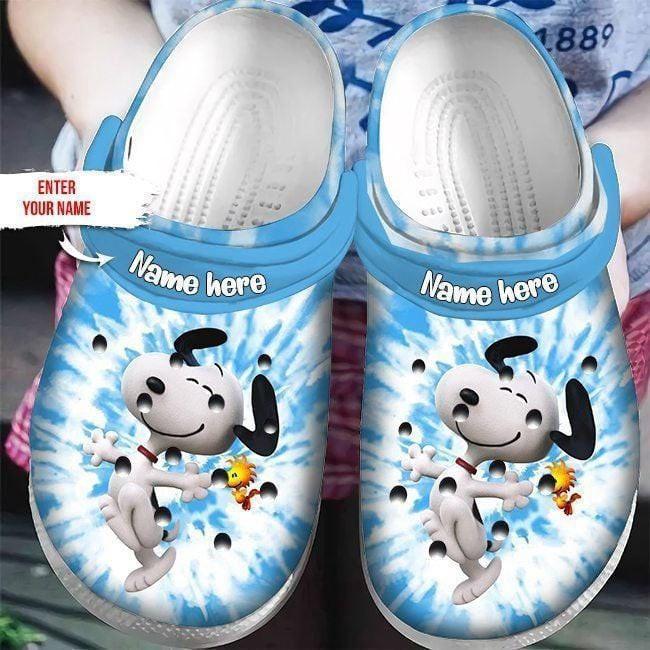 Information About Snoopy Custom Name Pattern Crocs-Slippers-Slippers Classic Clogs Shoes In Blue & White
