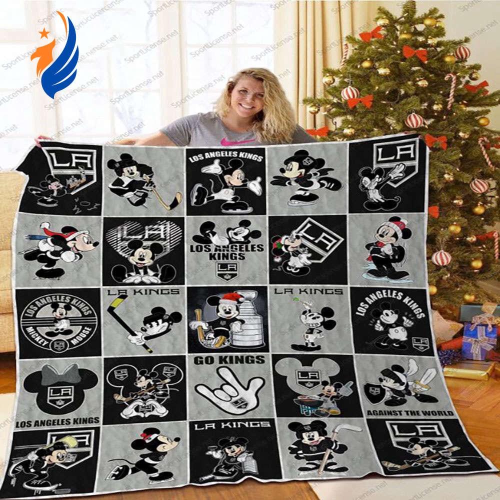 The LA Kings’ Fan Rejoice with Mickey Mouse Quilt Blanket is the perfect addition to your home decor collection. Made from soft and warm materials, this blanket not only keeps you cozy but also showcases your love for the LA Kings and Mickey Mouse. The unique design features the iconic LA Kings logo alongside Mickey Mouse, creating a stylish and eye-catching look. Whether you're cuddling up on the couch or displaying it as a decorative piece, this blanket is sure to impress. It also makes for a thoughtful gift for any LA Kings fan. So, embrace your fandom and bring a touch of magic to your home with this must-have blanket!